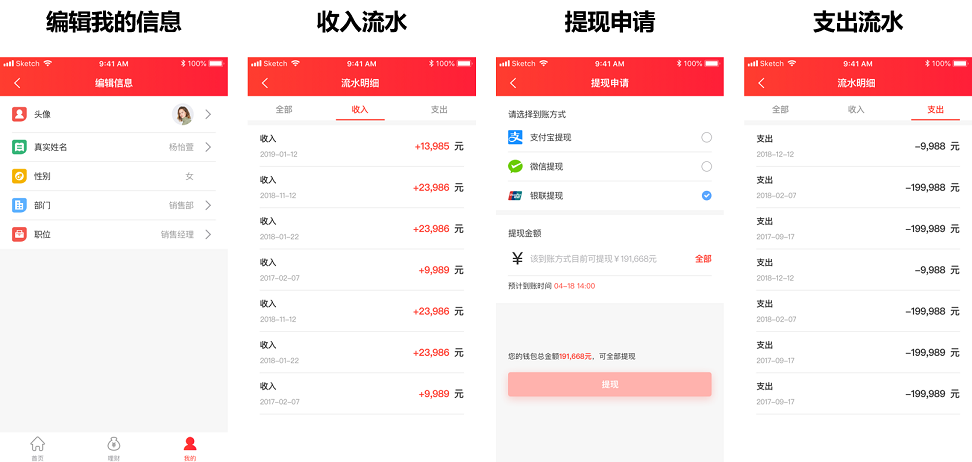 3、理財(cái)詳情頁面(購買理財(cái)、買入記錄、持有詳情、每日收益等情況)