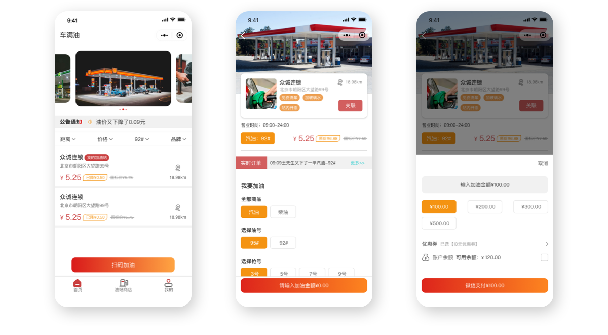 車滿油小程序是油滿滿(北京)科技有限公司委托北京合合科技開發(fā)的加油站的小程序。主要功能包括:油站搜索、線上支付、預約加油、我的優(yōu)惠券等等。如今汽車已經是我們生活中必不可少的部分,汽車數(shù)量不斷增多,家庭擁有汽車已經不是難事。汽車相關的服務也非常多,日常加油的APP和小程序可以給用戶帶來非常便捷的服務,這也是做這個小程序的初衷。