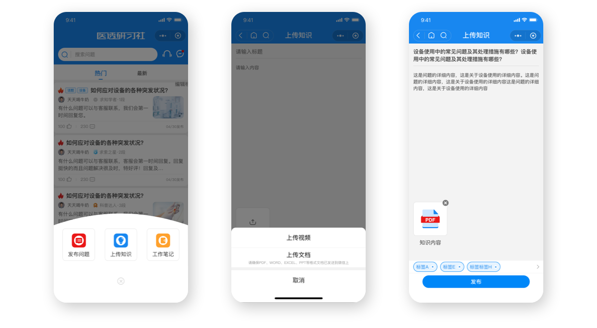醫(yī)透研習(xí)社知識發(fā)布和上傳頁面,可以進行問題的發(fā)布或者問題的回答。