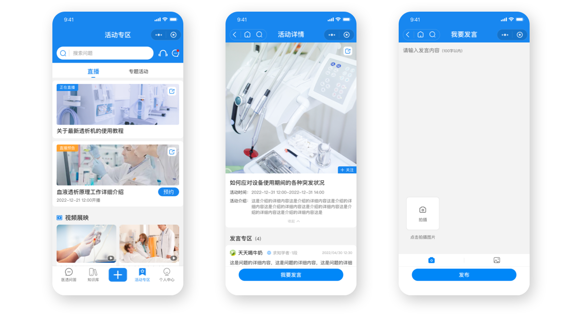 醫(yī)透研習(xí)社活動專區(qū)頁面,可以展示一些研習(xí)社的直播和專題活動。