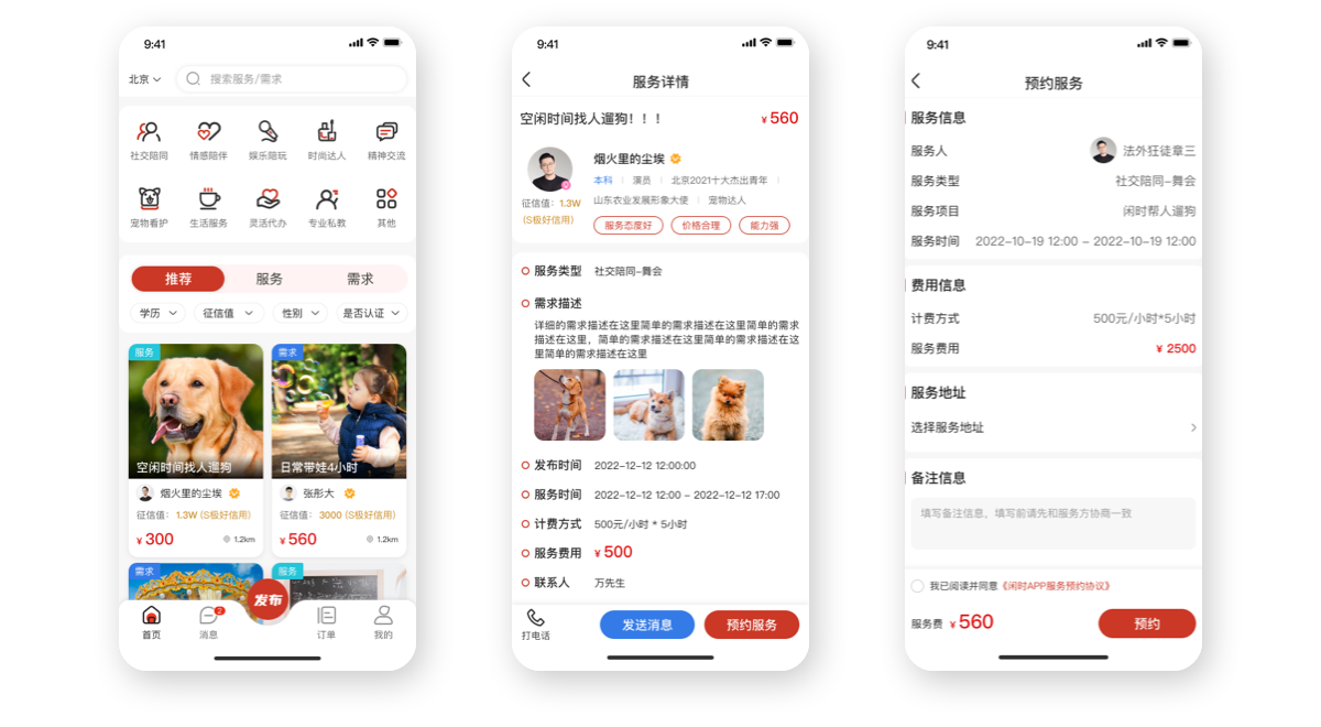 閑時空APP,將有閑暇時間的人利用起來,可以進(jìn)行線上的交易,包括社交陪同、寵物看護(hù)、生活服務(wù)、靈活代辦、專業(yè)私教等。