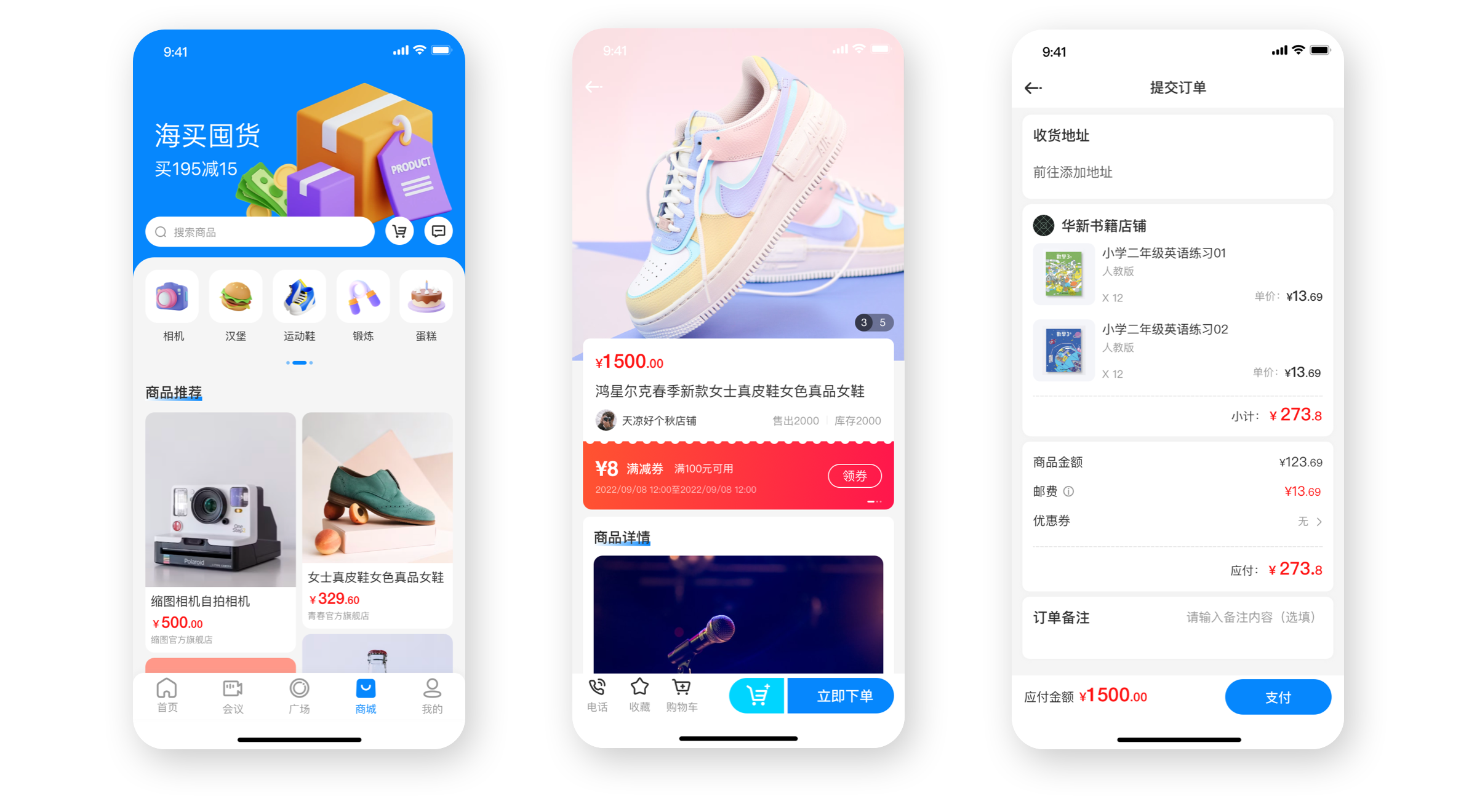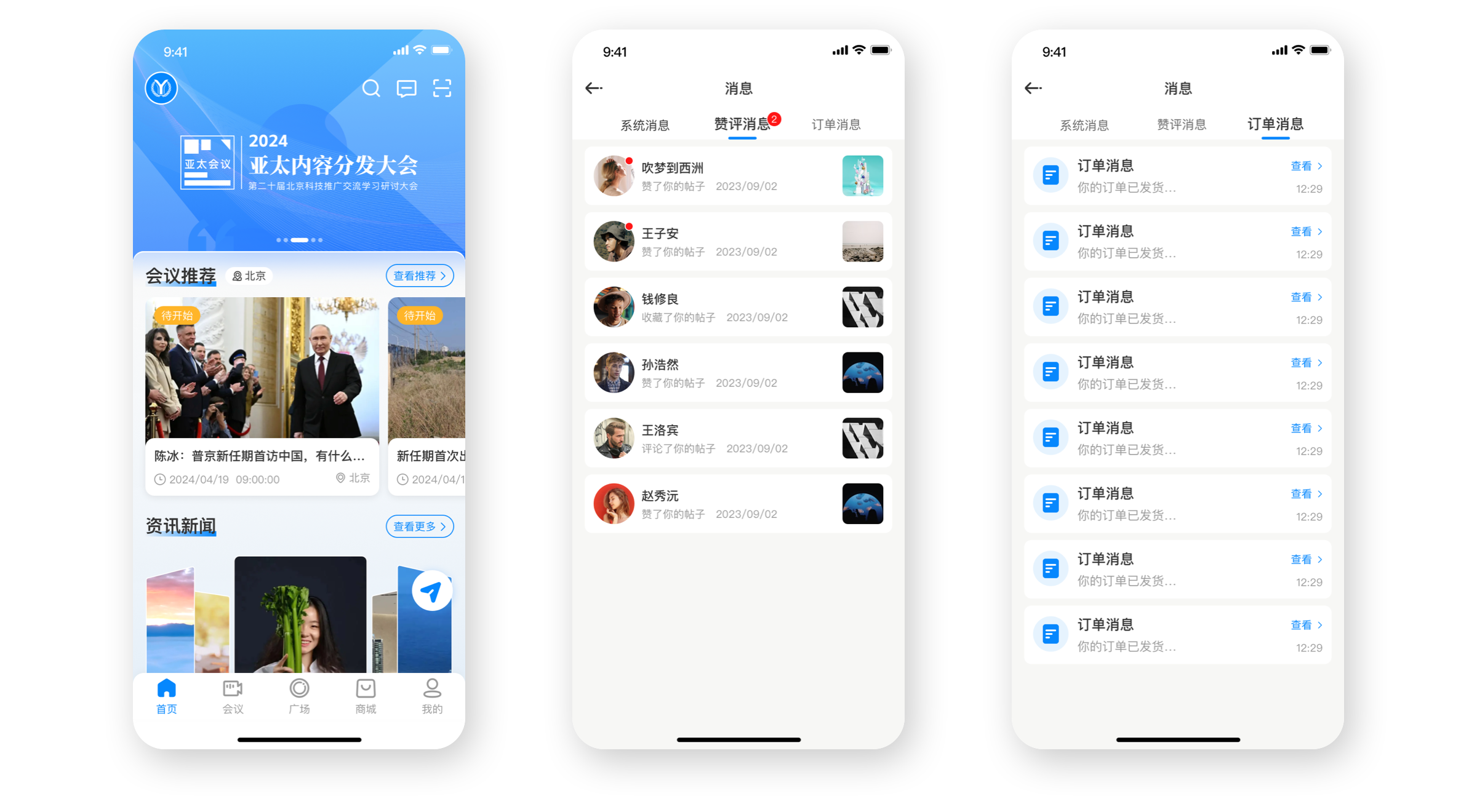 搜索功能:包括搜索會(huì)議、動(dòng)態(tài)、資訊、商品等;