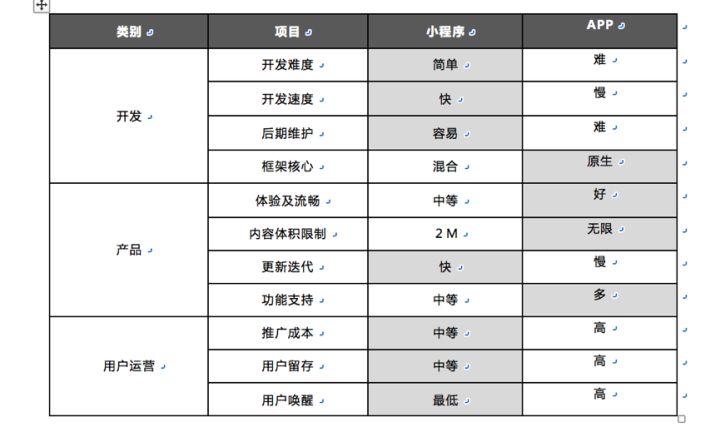 通過對比,我們可以看出,小程序的特點是開發(fā)難度較低、速度快、后期維護容易、更新迭代快、用戶運營有優(yōu)勢,但是,體驗方面稍差、內(nèi)容體積有限制,總的還是來源于一個“小”字。而APP開發(fā)開發(fā)難度較高、速度慢、后期維護難、更新迭代相對慢、用戶運營成本高,但是用戶體驗好、原生。