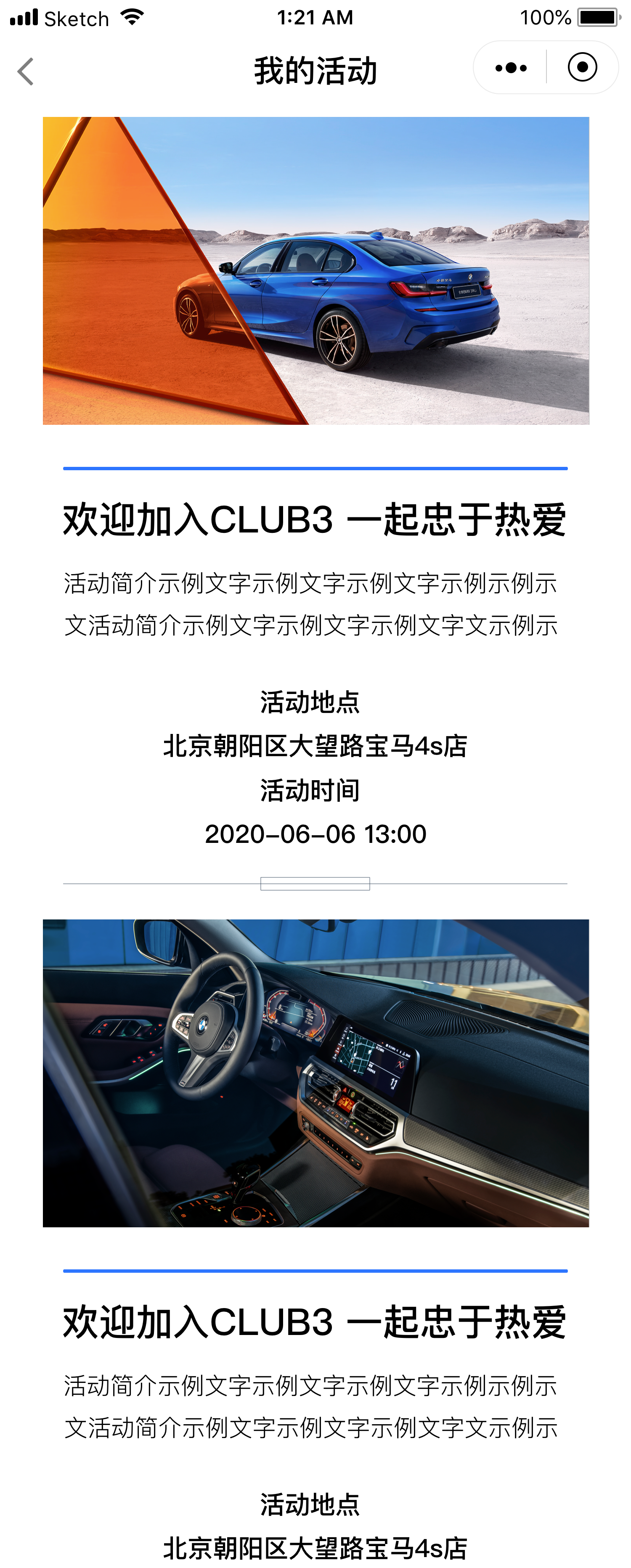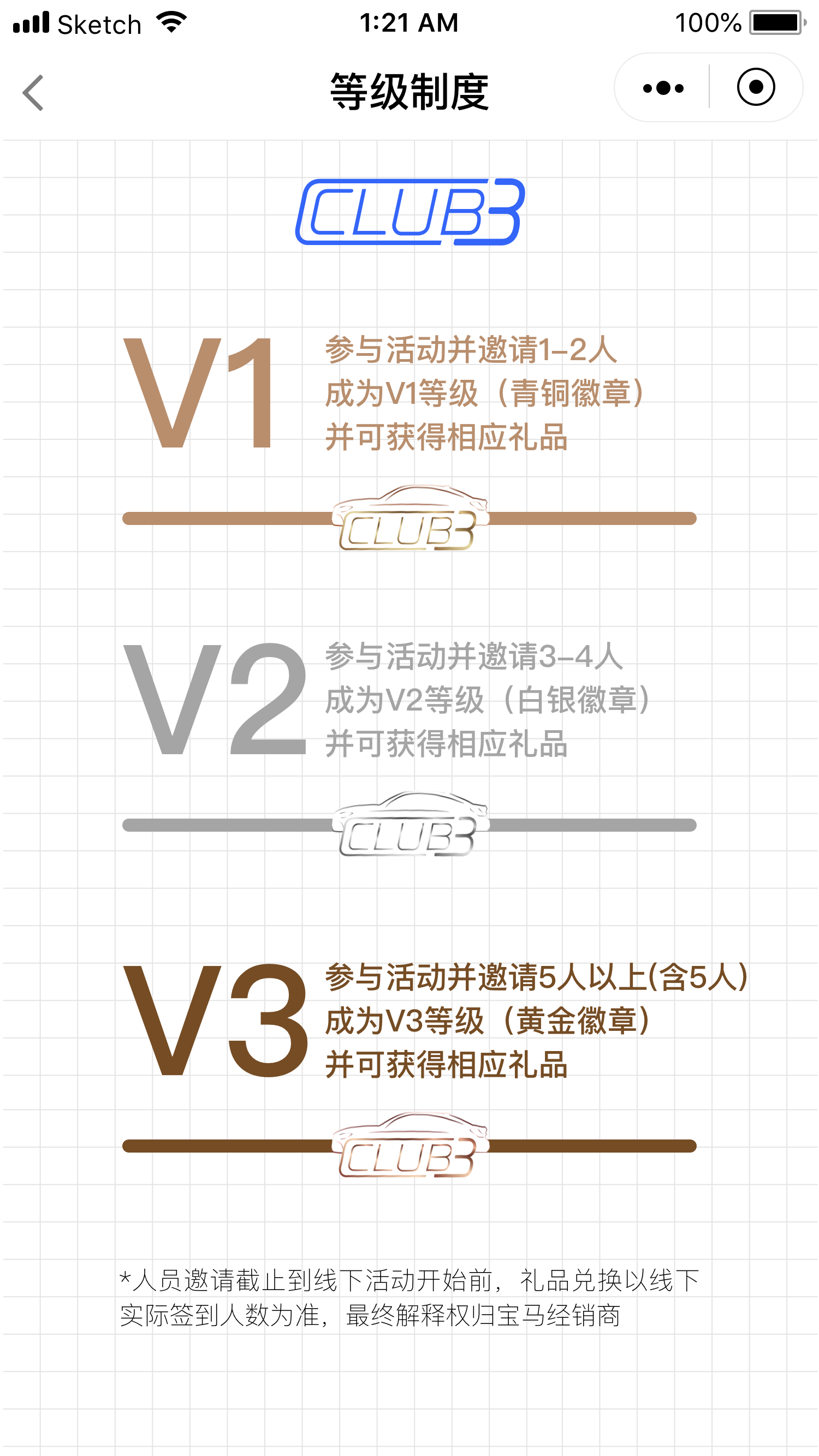 寶馬的這個小程序——Club3,是一個擁有熱愛的粉絲聚集地,是充分利用私域流量,發(fā)揮KOC的重要作用,提升粉絲數量,提高寶馬用戶粘性的重要平臺。該小程序主要是經銷商用于線下展會發(fā)布,用戶可線上報名參會,線下簽到,用戶還可以邀請用戶,有戰(zhàn)隊之分,也可以進行線上群里交流。