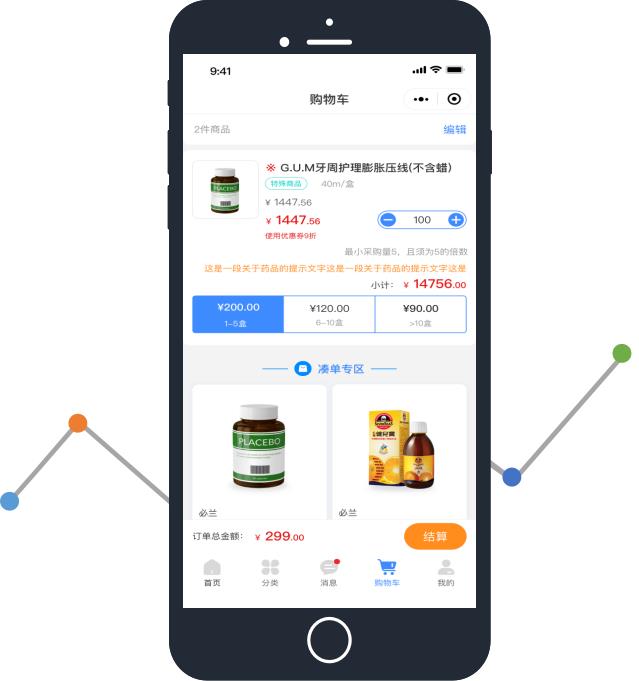 國藥商城原本就有PC端,來滿足線上面向零售藥店、口腔診所、民營醫(yī)院等客戶群體的B2B在線商城,年銷售額上億元,而隨著移動互聯(lián)網(wǎng)的發(fā)展,人們手機移動端辦公需求提高,小程序發(fā)展迅猛,國藥集團作為國內(nèi)領(lǐng)先的引領(lǐng)性醫(yī)藥健康產(chǎn)業(yè)集團,重視創(chuàng)新、提升服務(wù),也是責(zé)無旁貸的,移動端的商城小程序可以方便商家下單,促進銷售,對于提升服務(wù)質(zhì)量、提高銷售額都具有重要意義。