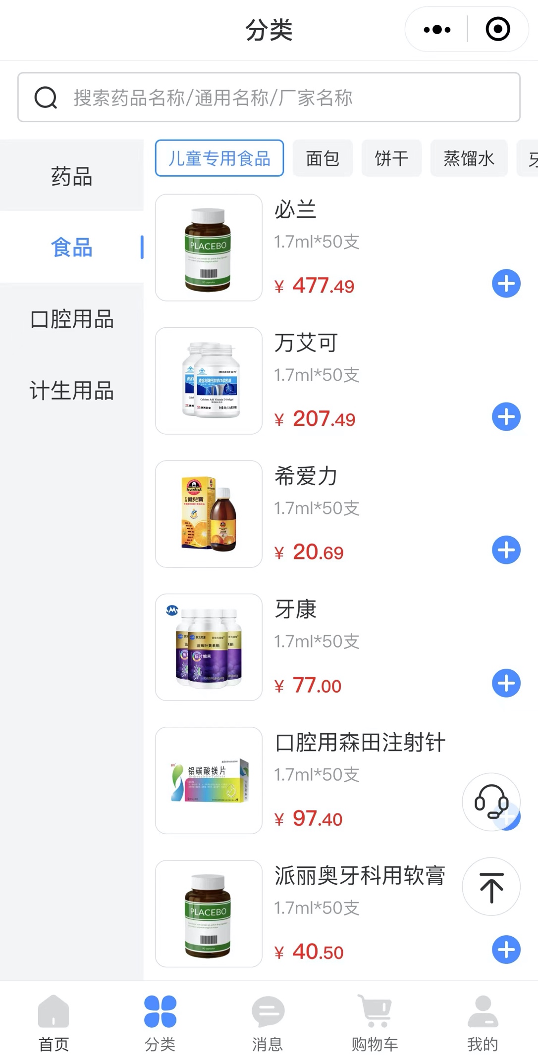 國藥電商小程序?qū)λ幤愤M(jìn)行分類,如藥品、食品、口腔用品、生計(jì)用品等,方便用戶一目了然地瀏覽商品,同時(shí),商品的明確劃分可以更好的貼合用戶的使用需求,讓消費(fèi)者在選購商品時(shí)更加便捷。