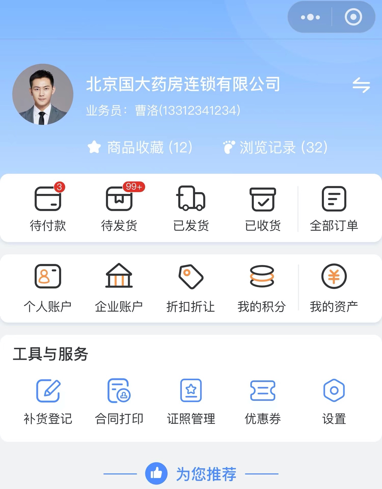 “我的”可以幫助用戶實(shí)時(shí)看到訂單詳情、物流信等,同時(shí)還可以查看個(gè)人賬戶和企業(yè)賬戶信息詳情、以及積分、資產(chǎn)等。有利于企業(yè)用戶做好自身的數(shù)據(jù)管理和數(shù)據(jù)分析,更加高效地處理內(nèi)部工作。